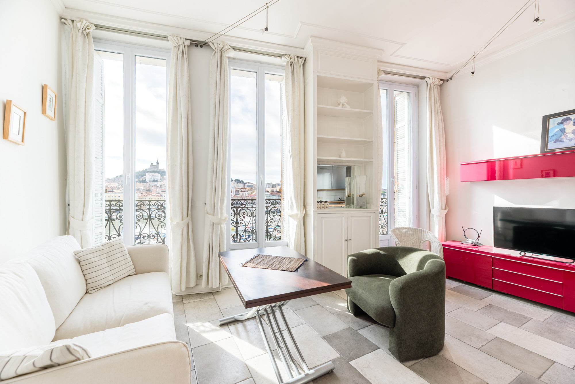 Découvrez ce superbe appartement T2 meublé de 36,45 m2, situé au quatrième étage d’un petit immeuble bien entretenu (sans ascenseur). Seul sur le palier, il offre une luminosité exceptionnelle et une vue imprenable sur le Vieux-Port et Notre-Dame de la Garde. Le séjour avec cuisine américaine équipée s’ouvre sur trois balcons, tout comme la chambre qui bénéficie également d’un balcon. Vous apprécierez le dressing, la belle hauteur sous plafond, le double vitrage, l’exposition Sud et la climatisation. L’appartement est en très bon état et bénéficie d’un emplacement privilégié à proximité immédiate de toutes commodités, commerces, écoles, transports en commun et accès autoroutes. Rare à la vente, à visiter sans tarder !